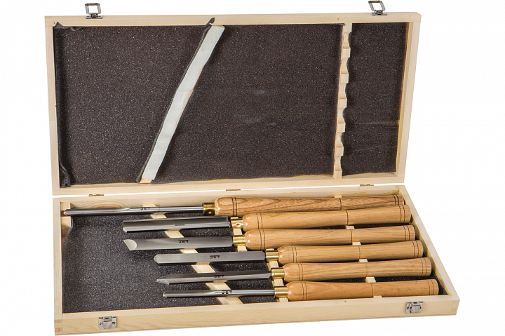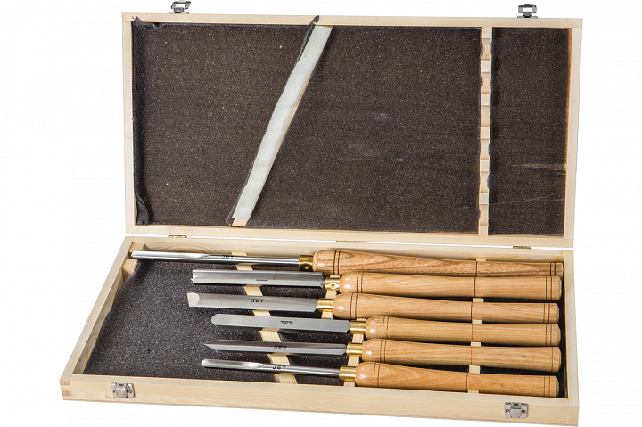Набор токарных резцов HSS с длинной рукояткой из ясеня в деревянной коробке