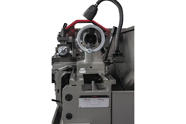 GHB-1340A DRO выполнен по двухвинтовой схеме. Для нарезания резьбы используется ходовой винт, для автоматического точения - ходовой вал. На станке возможна регулировка зазоров направляющих при помощи клиновых планок, конструкция задней бабки позволяет обтачивать конические заготовки. Для облегчения механического переключения режимов на GHB-1340A DRO применяется толчковый (импульсный) режим пуска двигателя.